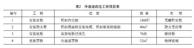 根據(jù)機(jī)房整體評(píng)估和分析,提出以下改造方案:首先,對(duì)機(jī)房冷空氣輸送各環(huán)節(jié)涉及到的硬件通道做封閉,即冷通道封閉;其次,通過逐步調(diào)整機(jī)房空調(diào)運(yùn)行模式,實(shí)現(xiàn)氣流組織優(yōu)化,擴(kuò)大冷熱通道溫差,實(shí)現(xiàn)冷氣資源的充分利用,提高空調(diào)運(yùn)行效率,達(dá)到節(jié)能減排的目的。改造施工以機(jī)房環(huán)境安全運(yùn)行為前提,采用循序漸進(jìn),即時(shí)觀測(cè),逐步改進(jìn)的方式進(jìn)行,在改造施工過程中及時(shí)記錄相關(guān)的機(jī)房環(huán)境參數(shù)的變化情況。