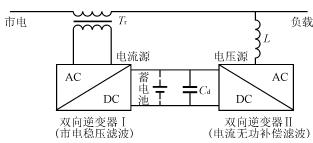 • 市電掉電后,電池通過DC一AC逆變器向負載繼續(xù)供電