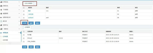 首先,系統(tǒng)管理員先進(jìn)行任務(wù)配置,系統(tǒng)管理在任務(wù)配置頁(yè)面,進(jìn)行任務(wù)分類與任務(wù)的配置。使用日常任務(wù)之前,需要先配置在相應(yīng)的任務(wù)分類下配置任務(wù),才能使用。