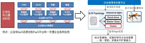 上述是在組織架構(gòu)上適應(yīng)云服務(wù)的運(yùn)維,在技術(shù)上,我們公司積極推進(jìn)企業(yè)級(jí)資源池、第三代CRM的IAAS和PAA融合架構(gòu)建設(shè),實(shí)現(xiàn)應(yīng)用節(jié)點(diǎn)容量通過服務(wù)方式自動(dòng)擴(kuò)展,做到集中統(tǒng)一管控,深入運(yùn)維提升核心掌控能力,目前本項(xiàng)目正在建設(shè)中,如下圖所示: