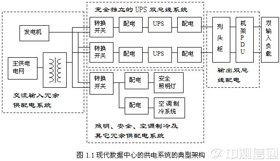 對于現(xiàn)代化機(jī)房,我們關(guān)鍵看配電環(huán)節(jié)。總的來說,將變電所送來的工頻交流電直接送給計(jì)算機(jī)設(shè)備配電柜,然后再分配給計(jì)算機(jī)設(shè)備。直接供電方式具有設(shè)備少、投資運(yùn)行費(fèi)用低、供電簡單、維修方便等優(yōu)點(diǎn)。缺點(diǎn)是對電網(wǎng)質(zhì)量要求高,容易受電網(wǎng)及負(fù)載變化的影響。一般來說,大中城市的供電系統(tǒng)可以滿足主機(jī)及外圍設(shè)備對電網(wǎng)質(zhì)量的要求,但設(shè)計(jì)時(shí)要注意避免機(jī)房附近有較大負(fù)載的啟動、電磁干擾等情況。交流穩(wěn)壓器供電。50Hz的工頻電源經(jīng)交流穩(wěn)壓器后,再供計(jì)算機(jī)使用,可以衰減許多暫態(tài)沖擊、幅度波動和電壓脈沖,但無法糾正電源頻率波動。