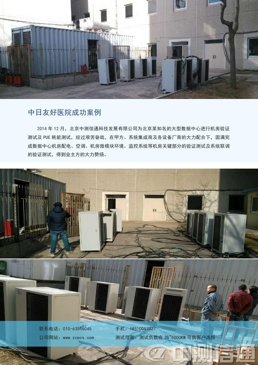 2014年12月,北京中測(cè)信通科技發(fā)展有限公司為中日友好醫(yī)院進(jìn)行PUE耗能測(cè)試。