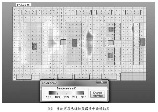 通過將空調(diào)運(yùn)行參數(shù)(包括送風(fēng)溫度,回風(fēng)溫度,風(fēng)速等)輸入到CFD軟件中,通過軟件模擬和分析可以計(jì)算出空調(diào)運(yùn)行效率,進(jìn)而對(duì)比改造前后空調(diào)運(yùn)行效率的變化。