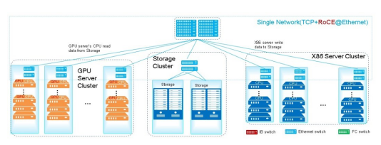 不同類型的應(yīng)用對數(shù)據(jù)中心網(wǎng)絡(luò)有著不同的要求。前端網(wǎng)絡(luò)通常采用TCP協(xié)議,IP/以太網(wǎng)絡(luò)技術(shù)成為前端網(wǎng)絡(luò)主流技術(shù),成本低、擴展性好;存儲網(wǎng)絡(luò)一直在追求大帶寬高吞吐以充分發(fā)揮存儲盤和CPU的效率,上世紀(jì)90年代末采用同時期比Ethernet速率更高的FC技術(shù)。進(jìn)入20世紀(jì),隨著更高速率的SSD的規(guī)模應(yīng)用,特別是近來高速低時延的NVMe技術(shù)的出現(xiàn),存儲需要更高速更高效的網(wǎng)絡(luò);計算網(wǎng)絡(luò)主要采用InfiniBand專網(wǎng),典型代表為HPC等高性能業(yè)務(wù),低時延是其極致追求。但隨著RoCE技術(shù)的深入發(fā)展,Ethernet在計算網(wǎng)絡(luò)中的應(yīng)用也逐漸普遍。