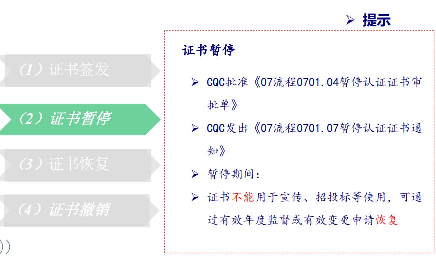 ;根據(jù)認(rèn)證實施規(guī)則,證書暫停,甚至證書注銷