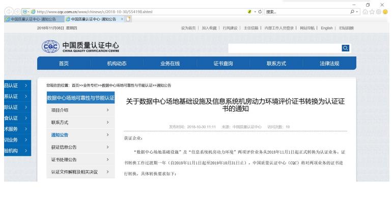 通知見:首頁>>業(yè)務(wù)專欄>>數(shù)據(jù)中心場地可靠性與節(jié)能認(rèn)證>>通知公告
