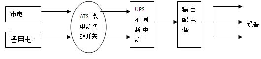 這是傳統(tǒng)數(shù)據(jù)中心普遍采用的供電方案,數(shù)據(jù)中心采用兩套供電輸入系統(tǒng),一套市電,一套備用電,備用電可以是蓄電池或柴油發(fā)電機組,市電是主用供電系統(tǒng),當市電故障時,通過ATS自動切換到備用電上,這樣斷電故障不會對后端設備產(chǎn)生影響。高精度的UPS供電切換時間可以在30MS以下,可以滿足絕大部分設備持續(xù)供電。