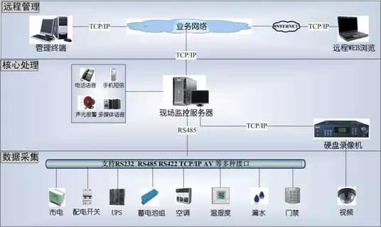 機房環(huán)境監(jiān)控系統(tǒng)是一個綜合利用計算機網(wǎng)絡(luò)技術(shù)、數(shù)據(jù)庫技術(shù)、通信技術(shù)、自動控制技術(shù)、新型傳感技術(shù)等構(gòu)成的計算機網(wǎng)絡(luò),提供的一種以計算機技術(shù)為基礎(chǔ)、基于集中管理監(jiān)控模式的自動化、智能化和高效率的技術(shù)手段,系統(tǒng)監(jiān)控對象主要是機房動力和環(huán)境設(shè)備等設(shè)備(如:配電、UPS、空調(diào)、溫濕度、漏水、煙霧、視頻、門禁、消防系統(tǒng)等)。